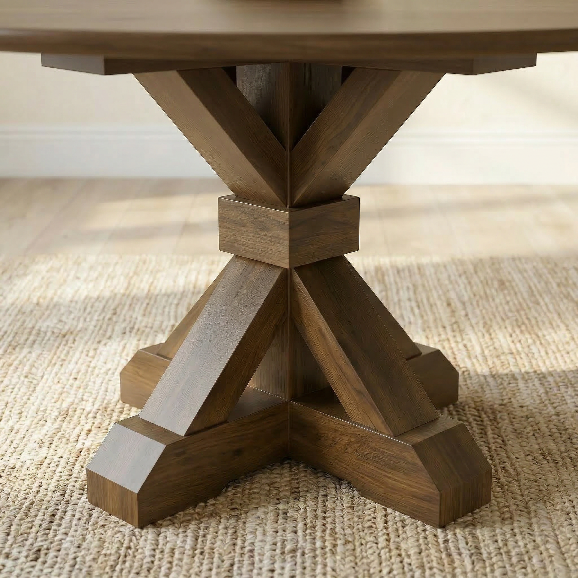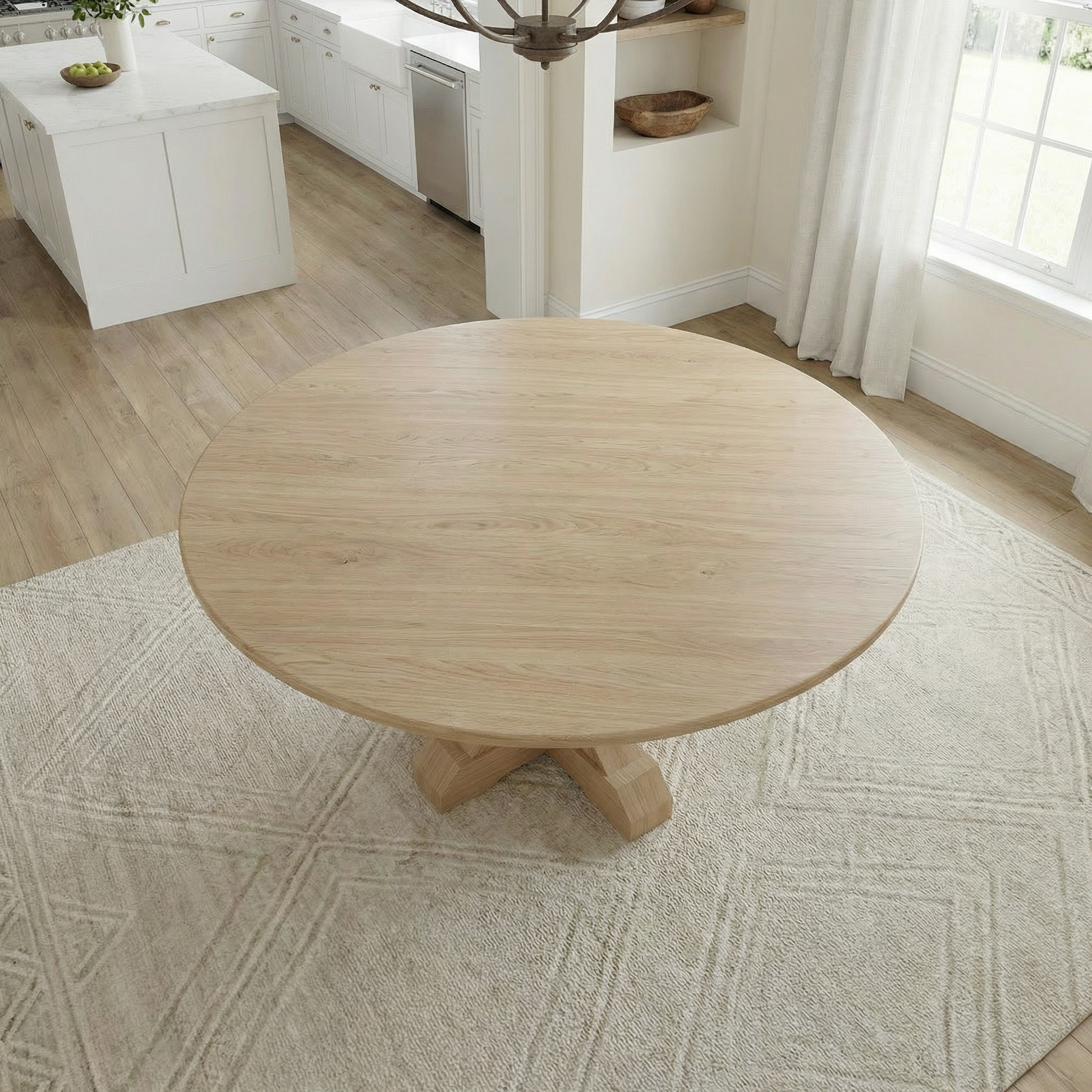The Viking custom round pedestal table is a testament to the beauty of simplicity. Crafted from select, premium materials this table combines natural charm with functional design. It a versatile centerpiece for any dining room, breakfast nook or kitchen space. Hand-applied finishes enhance the wood's inherent character, ensuring each piece is unique and allowing you to infuse your space with your own personal touch.