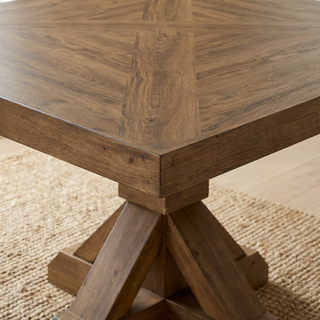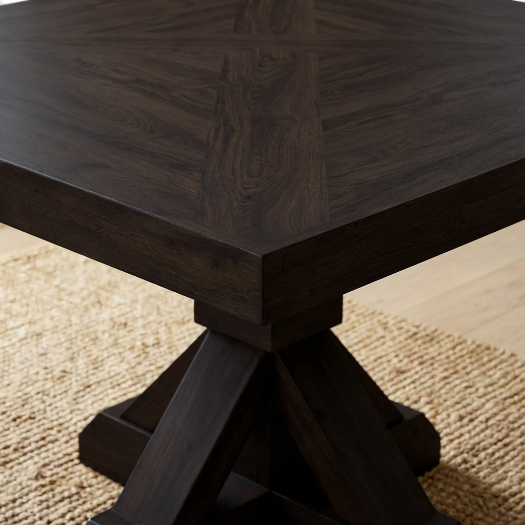 The Viking custom square pedestal table is a testament to the beauty of simplicity. Crafted from select, premium materials this table combines natural charm with functional design. It a versatile centerpiece for any dining room, breakfast nook or kitchen space. Hand-applied finishes enhance the wood's inherent character, ensuring each piece is unique and allowing you to infuse your space with your own personal touch.