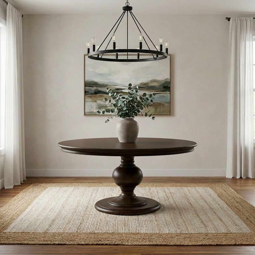 The Artisan | Oak Round Dining Table w/ Steel Pedestal